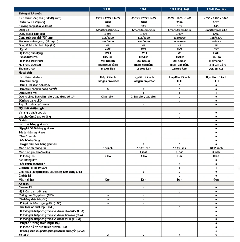 1.5 AT Đặc biệt 529 triệu VNĐ 585.237.000 VNĐ